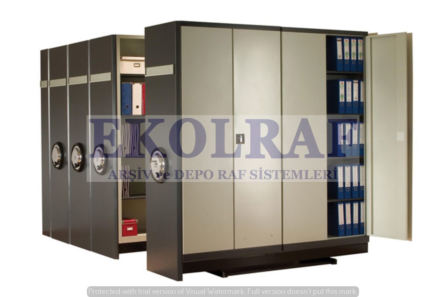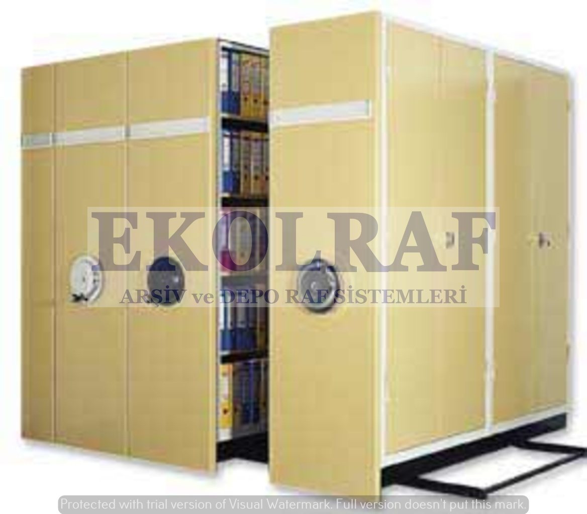 Açılır kapanır tek koridorda çalışıldığı için alandan % 60 tasarruf sağlanır.Sistem raylar üzerinde çalışan tekli,2li,3lü veya 4lü sıra dolaplardan oluşur.