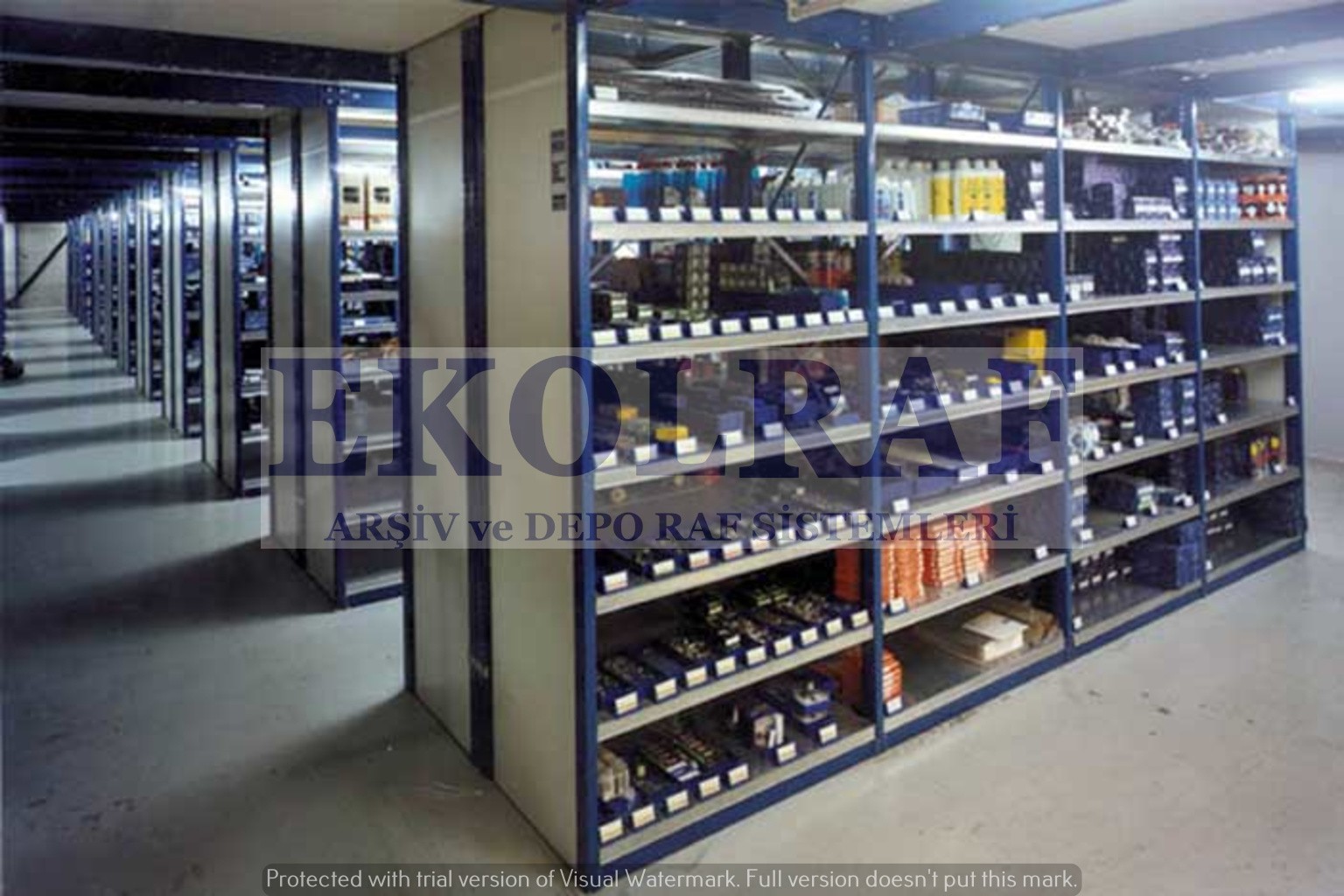 Oto lastik rafı,elbise askı rafı,kablo-bobin rafı,kumaş rafı,arşiv kutusu rafı,VS Depo alanının maksimum kullanılması için duvar kenarlarına tek sıra ve ortalara çift sıralı üniteler yerleştirilir.